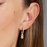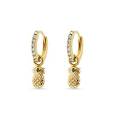 Verspielt hängt die mit einem Smaragd besetzte Ananas von der Mini Creole. Ein Schmuckstück voller Leichtigkeit, Glanz und Glamour. Die klassische Mini Diamant Creolen mit handbesetztem Diamant Pave können auch ohne dem Anhänger getragen werden.