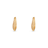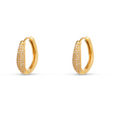 Fein und doch auffällig. Diese goldenen Creolen Ohrringe verzaubern und erstrahlen jedes Outfit. Die gewellte Creole ist mit weissen Topas Steinen von Hand besetzt. Trage sie zusammen mit der passenden Athena Ohr Klemme und mit einer unserer essenziellen Gold Halsketten.