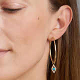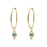Verspielt hängt das Diamant Pave besetze Nazar Auge mit einem Türkisstein an der Creole. Die Gold Creolen können auch ohne dem Anhänger getragen werden.