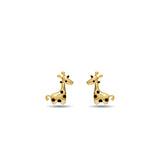 Verspielt und strahlend! Unsere Giraffen Ohrstecker in 585 Gold weisen von Hand gemalte schwarze Punkte in Emaille auf.